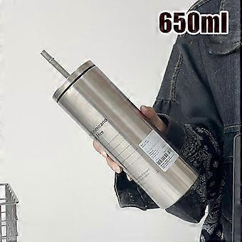 Bottiglia d'acqua da 21 once con cannuccia, bottiglia d'acqua isolata con apertura a bocca larga-argento scuro