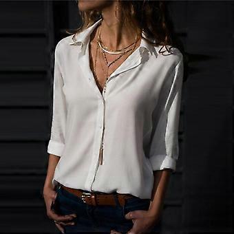 Chiffon Blouse Oversized Long Sleeve Women Blouses Tops Turn Down Collar Solid Office Shirt Casual Top Blusas Plus Size