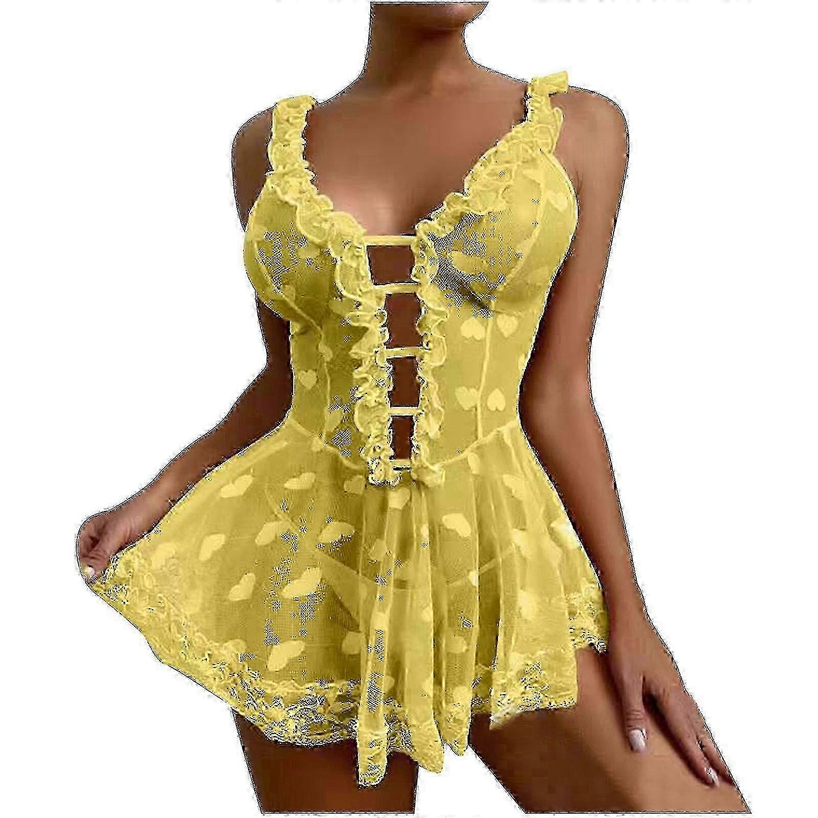 Lace-Up Mesh Nightgown with Stylish Solid Heart Pattern for Women's Fashion 2025