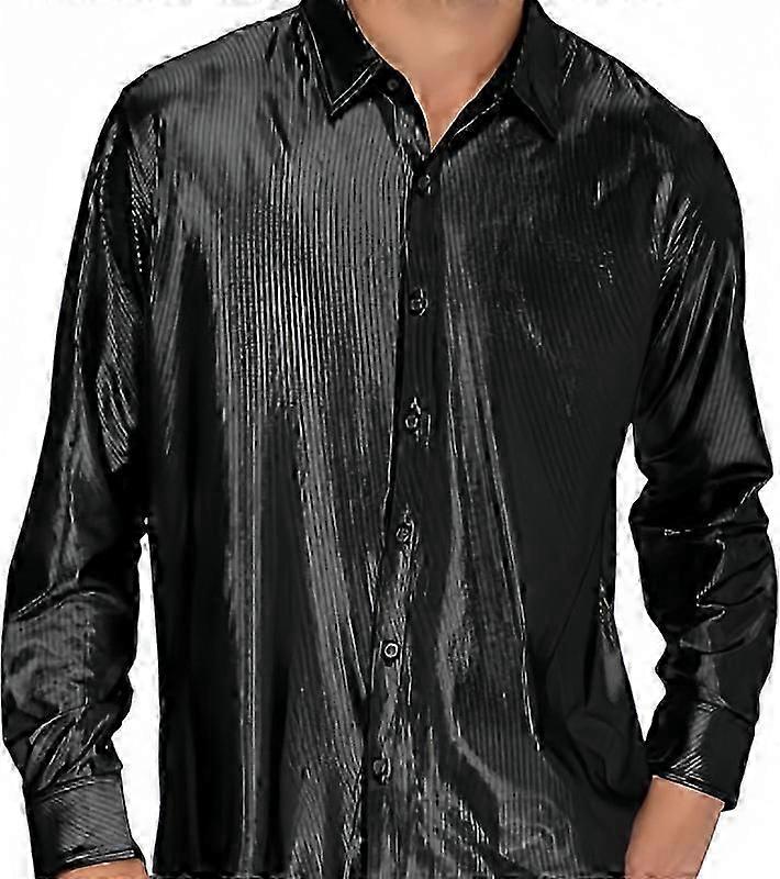 Mens Disco Shirts Shiny Long Sleeve Shirt