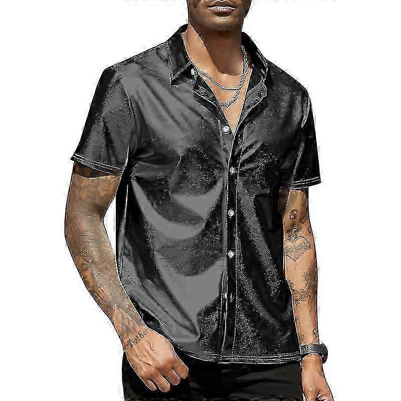 Men's Summer Shirts Short Sleeve Shiny Metallic Shirts