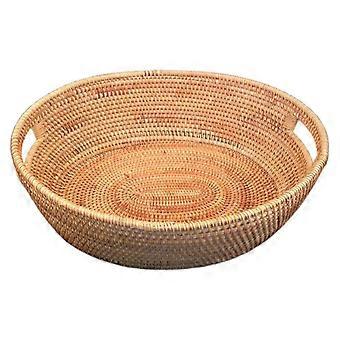 Cestino per frutta e verdura in rattan tessuto a mano Vassoio da picnic in vimini a doppia maniglia Cibo Piatti per pane Paletta per alimenti per l'essiccazione multiuso per la casa