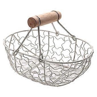 Wooden Handle Metal Retro Basket White