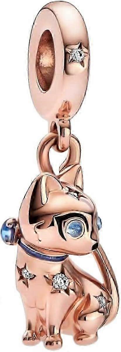 E Rose Gold Pet Cat Dangle S-pendant 925 Sterling Silver Bead Pendant For