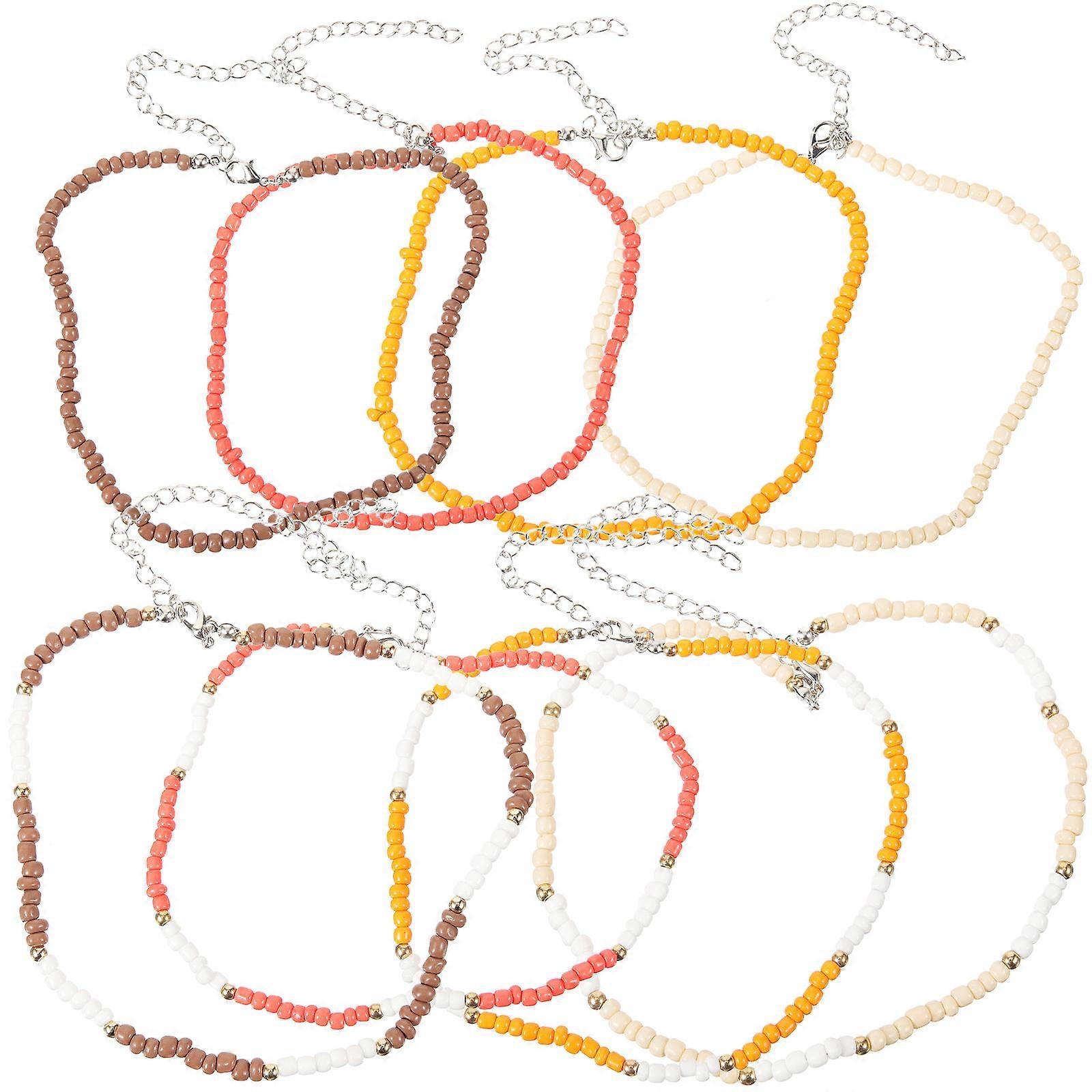 Colorful Beaded Choker Necklace For Women Daily Wear Adjustable Length Unique Gift 8Pcs
