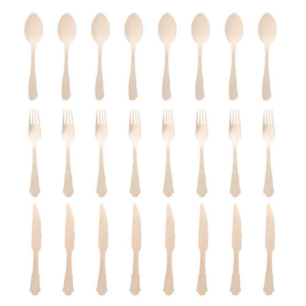 Wooden Disposable Knives Forks Spoons Cutlery Set Birthday Party Tableware Set