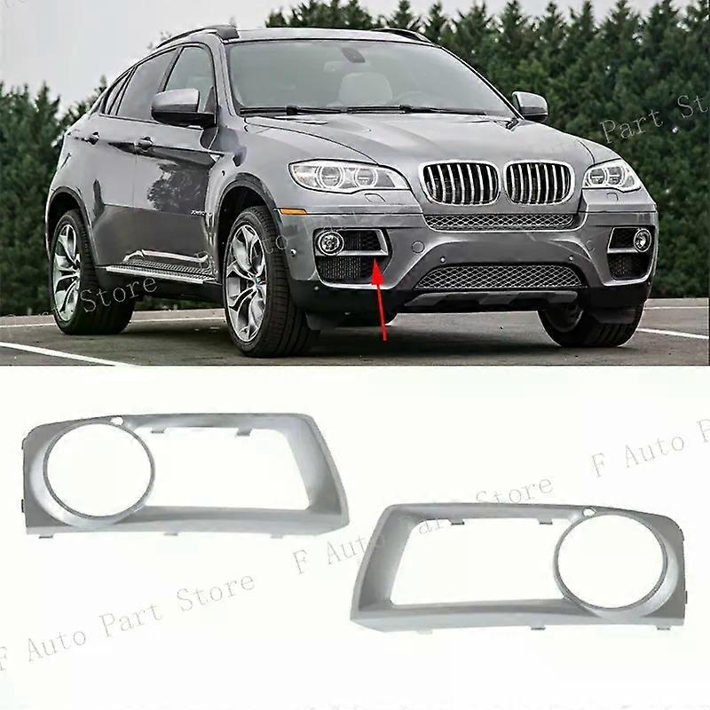 compatible for X6 E71 2012 2013 2014 Car Front Bumper Fog Light Lamp Trim Silver Frame Cover Lid 51117312595 51117312596