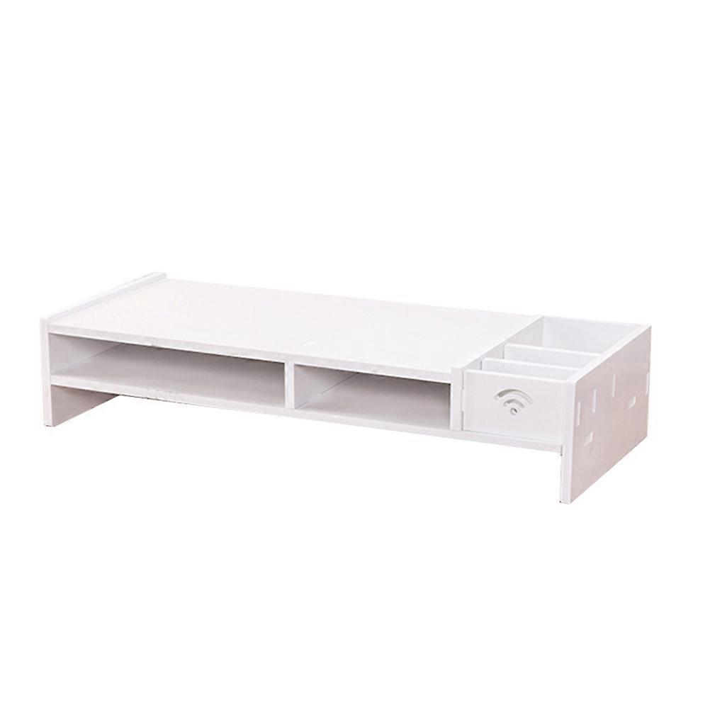 It is a practical desktop computer riser. Modern creative design, for desktop tidy organized, no any more! Suitable for use in office or home desk, to rise the height of computer monitor, makes your neck feel more comfortable. Worth buying! Feature - Color: White. - Material: Wood plastic composite. - Size: 49x20.5x10cm. - Very practical, space saving. - Beautiful and elegant appearance,Smooth without impurities ,suitable for any decor style. - Easy to installation, adapt traditional mortise and tenon con- , do not need any screws. - material,no paint,no ,no odorless. - Waterproof, can be wash by water directly. Package list: 1 x Desktop Monitor Stand