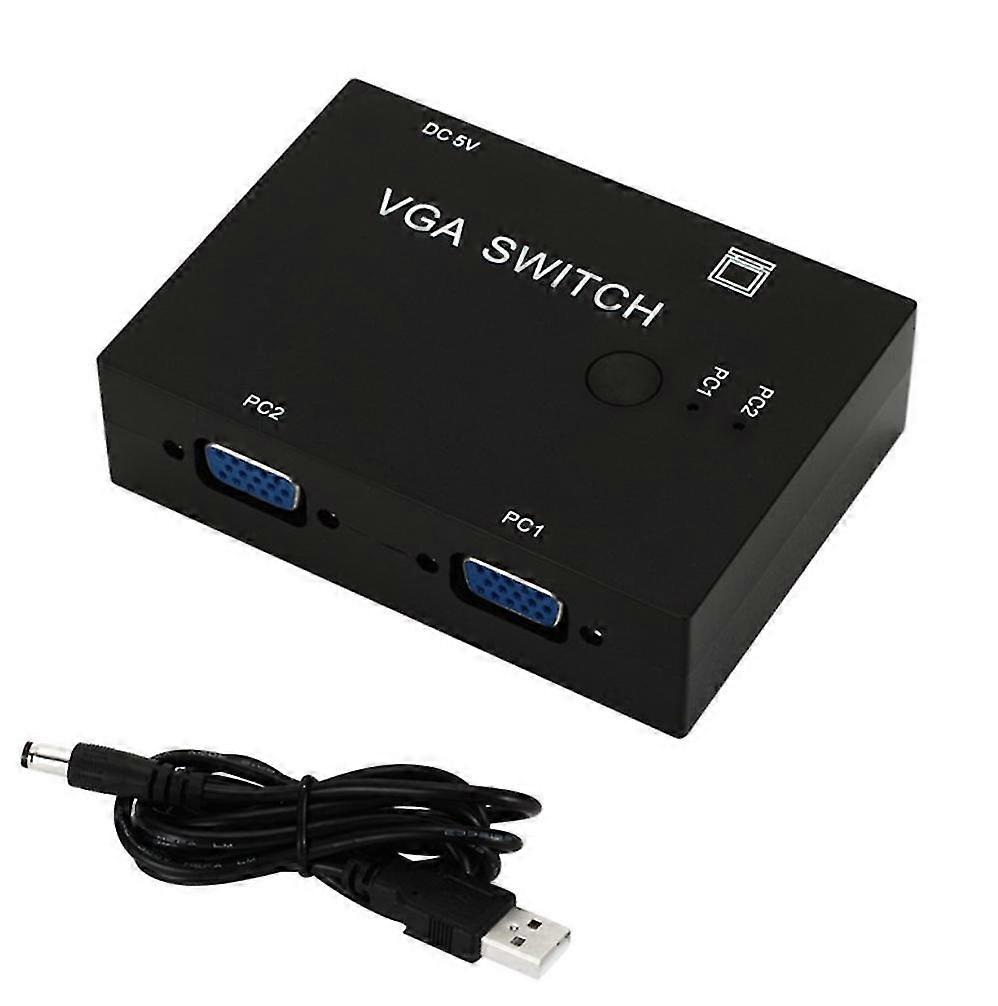 Feature2 in 1 out Plug and play, No additional software needed Support VGA, XVGA, SVGA, UXGA and Multisync display Not support DDC, DDC2,DDC2B Enables 2 computer to share 1 monitor, projector. or conversely, 2 monitors, projectors to share 1 computer not simultaneously Two press button switch for changing the VGA signal control A VGA switch may be used in security setups where monitoring different areas of a building is required and switching between multiple inputs is a necessity SpecificationDevice Type:2 PC to 1 Monitor VGA Switch Box Interface Type: 3 standard VGA female (2 in 1 out)