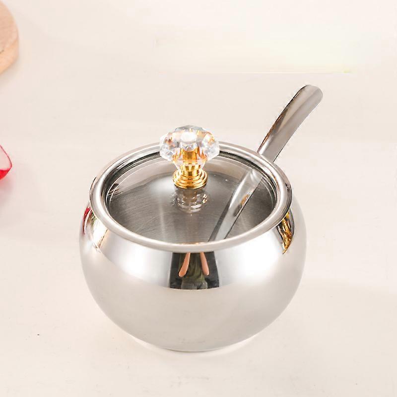 Gold and Silver Household Kitchen Condiment Pots for Serving Sugar Pepper Salt Spice Stainless Steel Sugar Bowl with Lid & Spoon