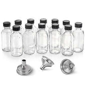 Confezione da 12 bottiglie in vetro trasparente da 2 once con coperchi e 3 imbuti - Boston Round da 60 ml