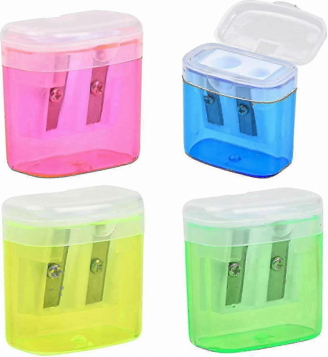 4-Pack Dual-Hole Pencil Sharpeners with Lids, Assorted Colors for Classroom, Office, and Home Use