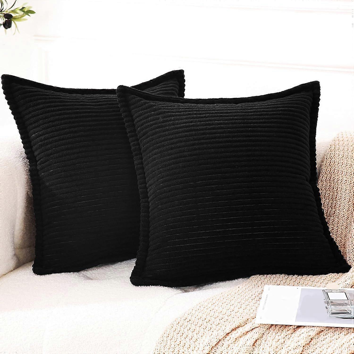 Corduroy Black Set of 2 Striped Boho Decorative with Edge Design,Super Soft