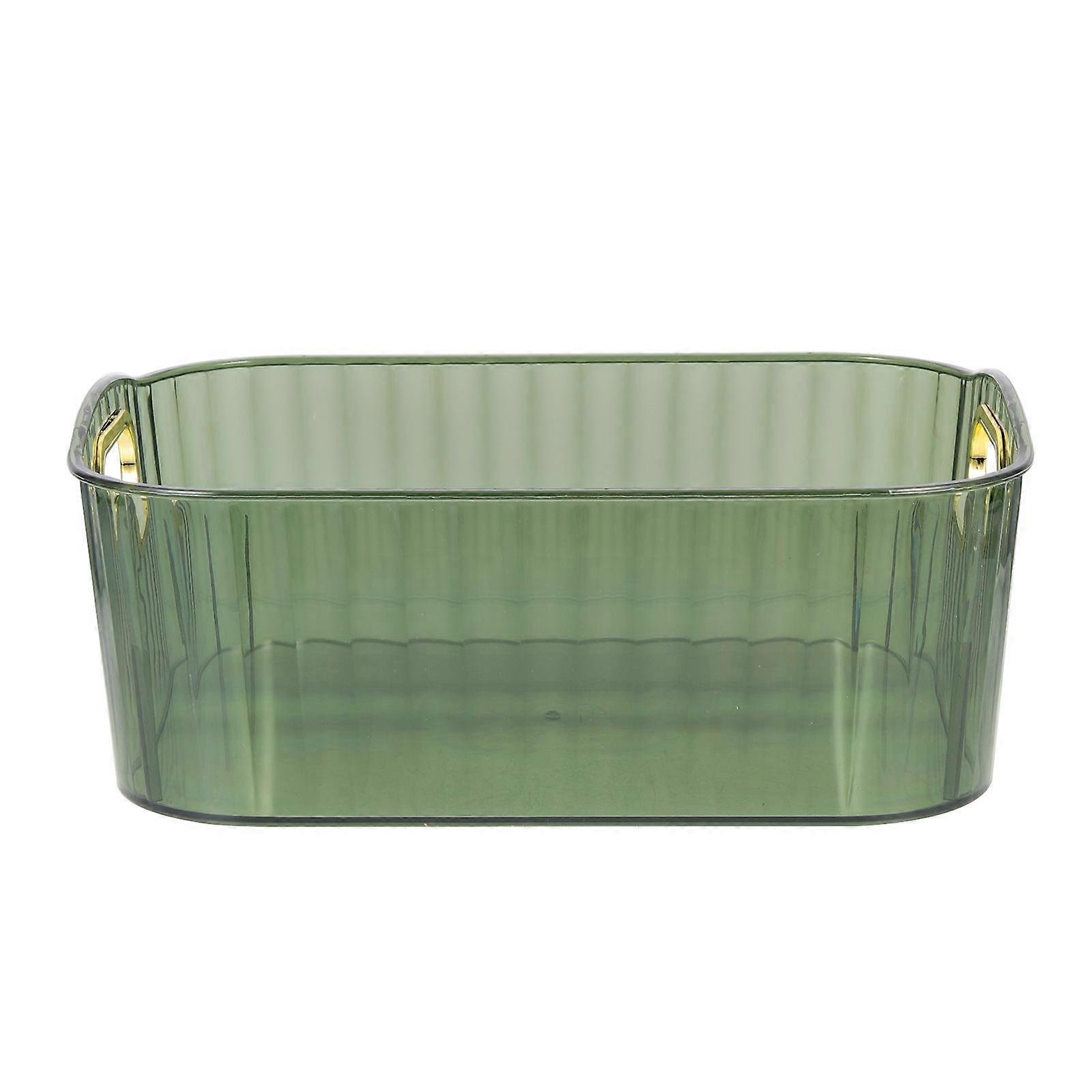 Cosmetics Storage Tray Desktop Organizer Box Office Use Transparent Green Round Edge Desk Organization 1Pcs