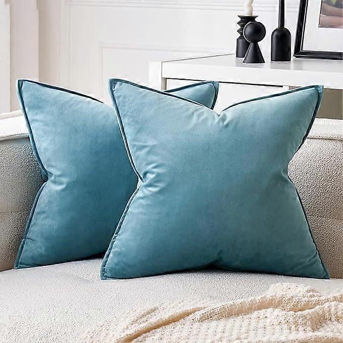 Cterwk Set of 2 Velvet Throw Pillow Covers with Zipper, 18x18 Inches Decorative Soft Solid Pillow Covers for Couch Bed Sofa