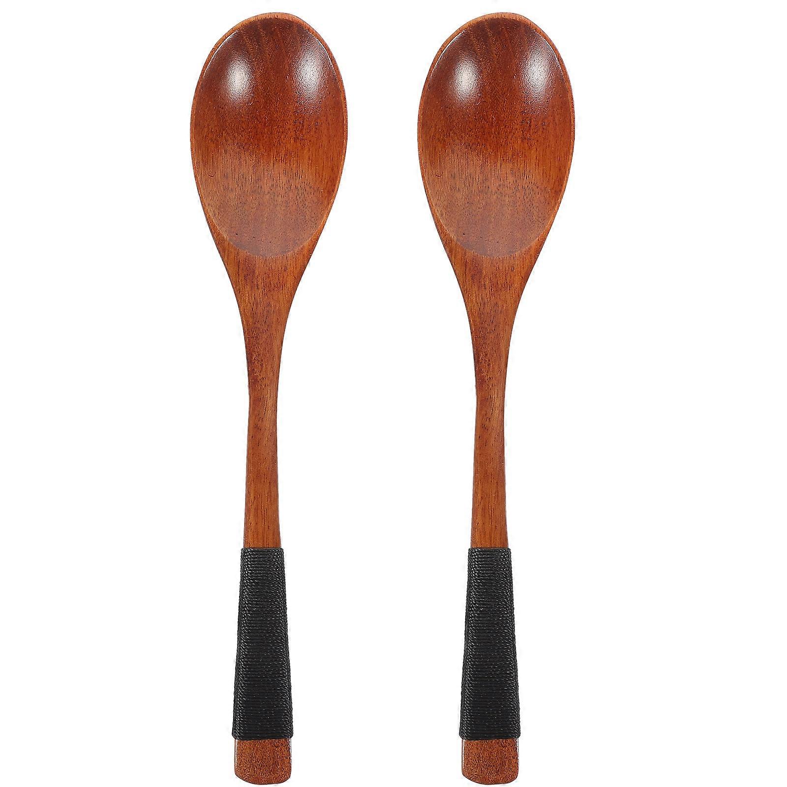 Honey Spoon 2Pcs Reusable Wood Kitchenware Long-Handled Brown Stirrers For Cooking Dining Gifts