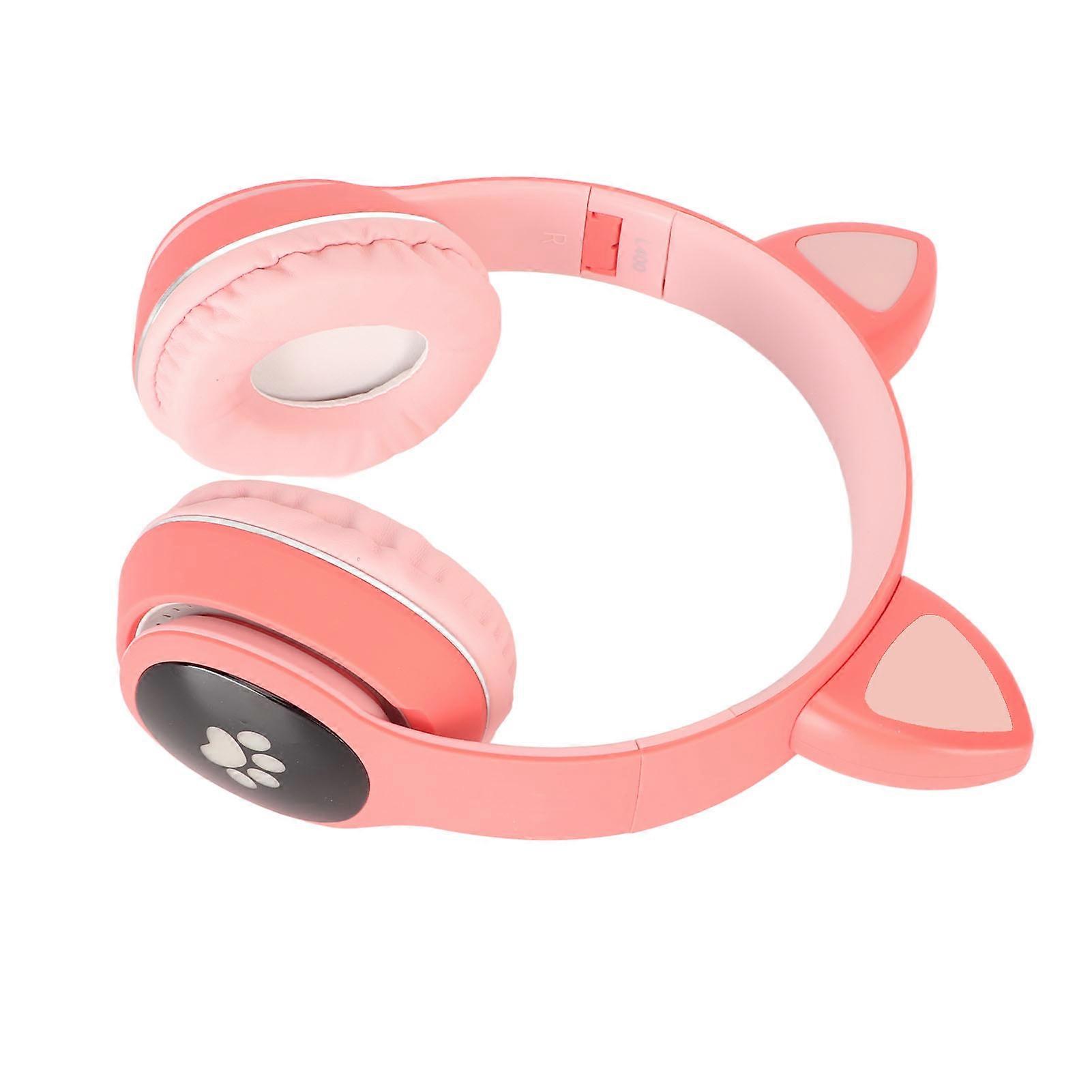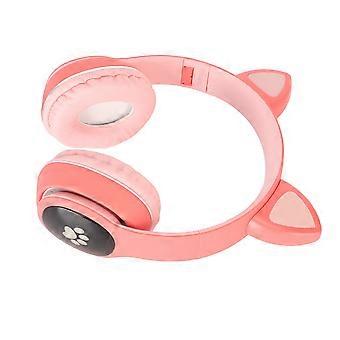 Cat Ear Gaming Headset Bluetooth Support Small Memory Card LINEIN Mode Gaming Headphone with LED Microphone Pink