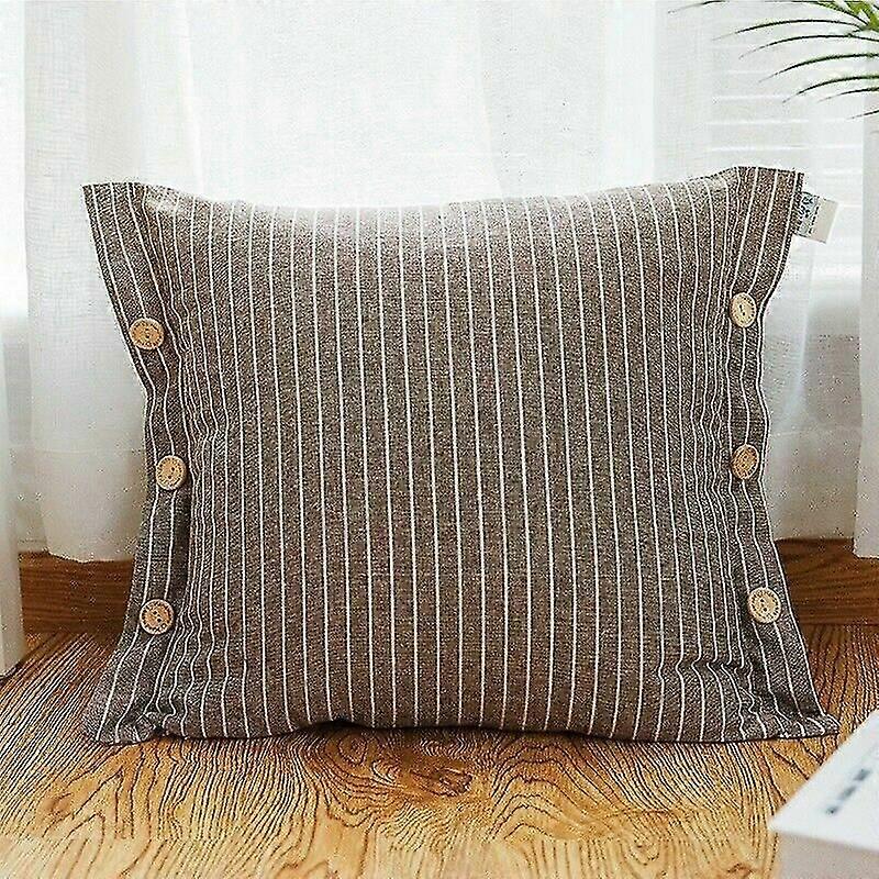 Cushion Cover Throw Pillow Case Stripe Button Linen Cotton Bed Sofa Home Decor-9