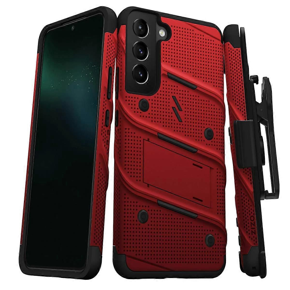 Galaxy S22 Plus Armored Bolt Case with Ultra Resistant Tempered Glass, Black / Red