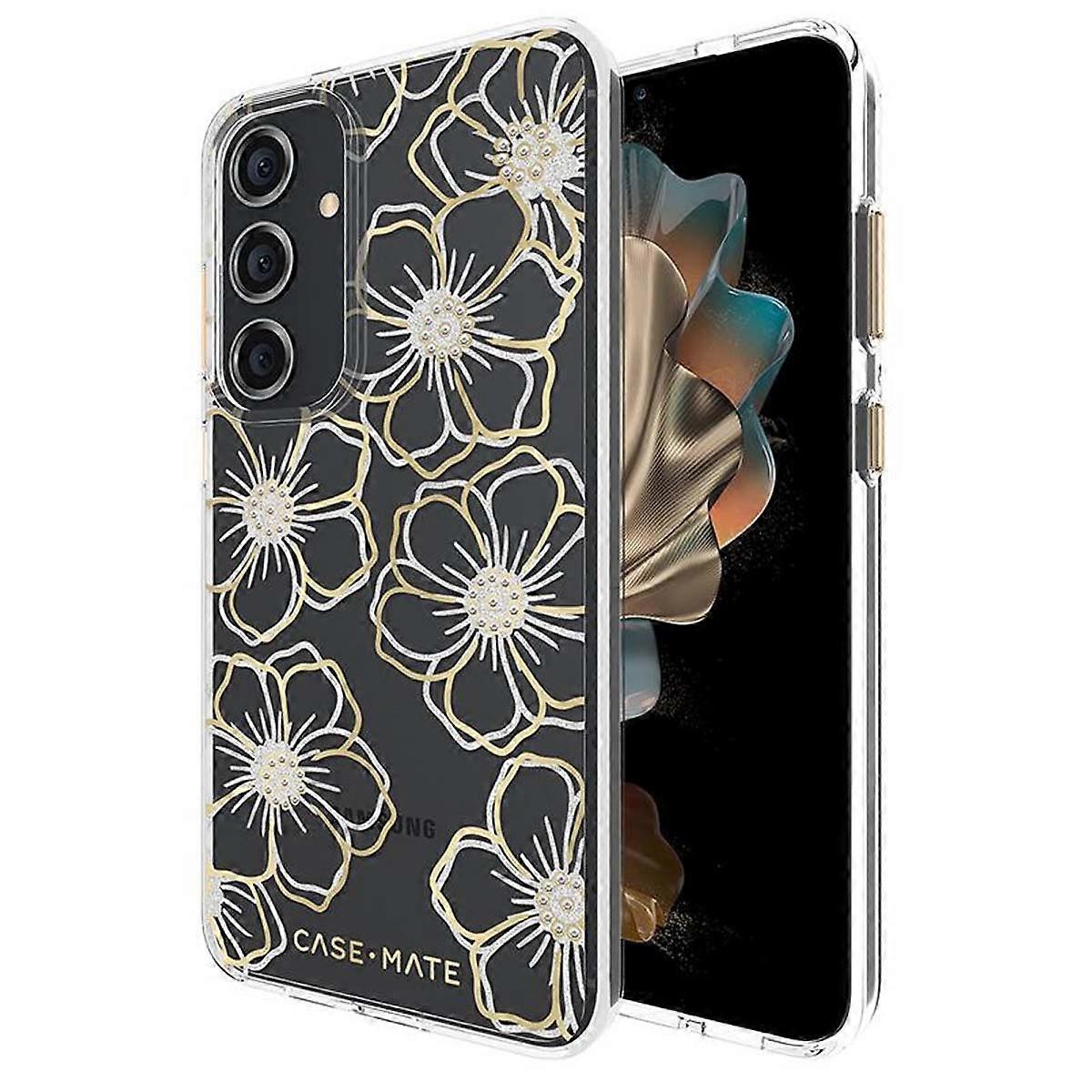 Case for Galaxy S24 Plus Floral Gems Model Ultra Resistant Antimicrobial, Gold