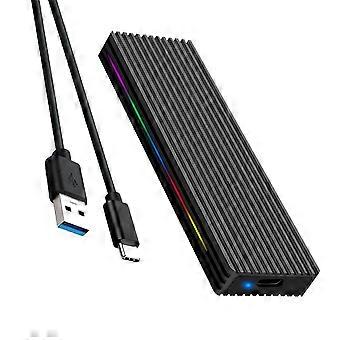 Custodia per SSD M.2 M Key 10 Gbps/5 Gbps USB3.1 protocollo NGFF USB-C Custodia mobile in lega di alluminio con luce RGB - Nero