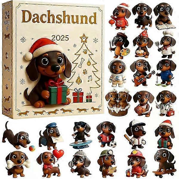 Dachshund Advent Calendar 2025 | 24 Days Christmas Tree Ornament Countdown Calendar with 2D Acrylic Cute Dachshund Hanging Pendant Christmas Tree