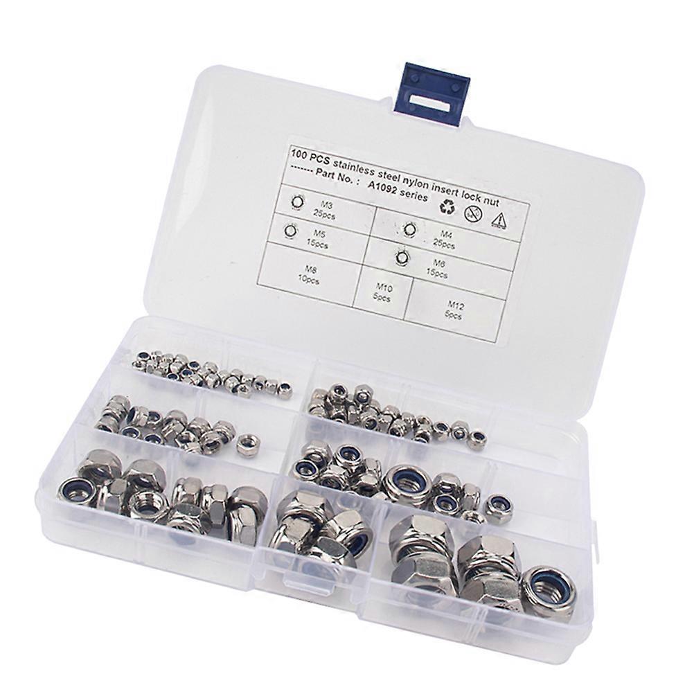 Stainless Steel Hex Screw Nut with Flange Nylon Lock Nuts for Car Silver 100pcs