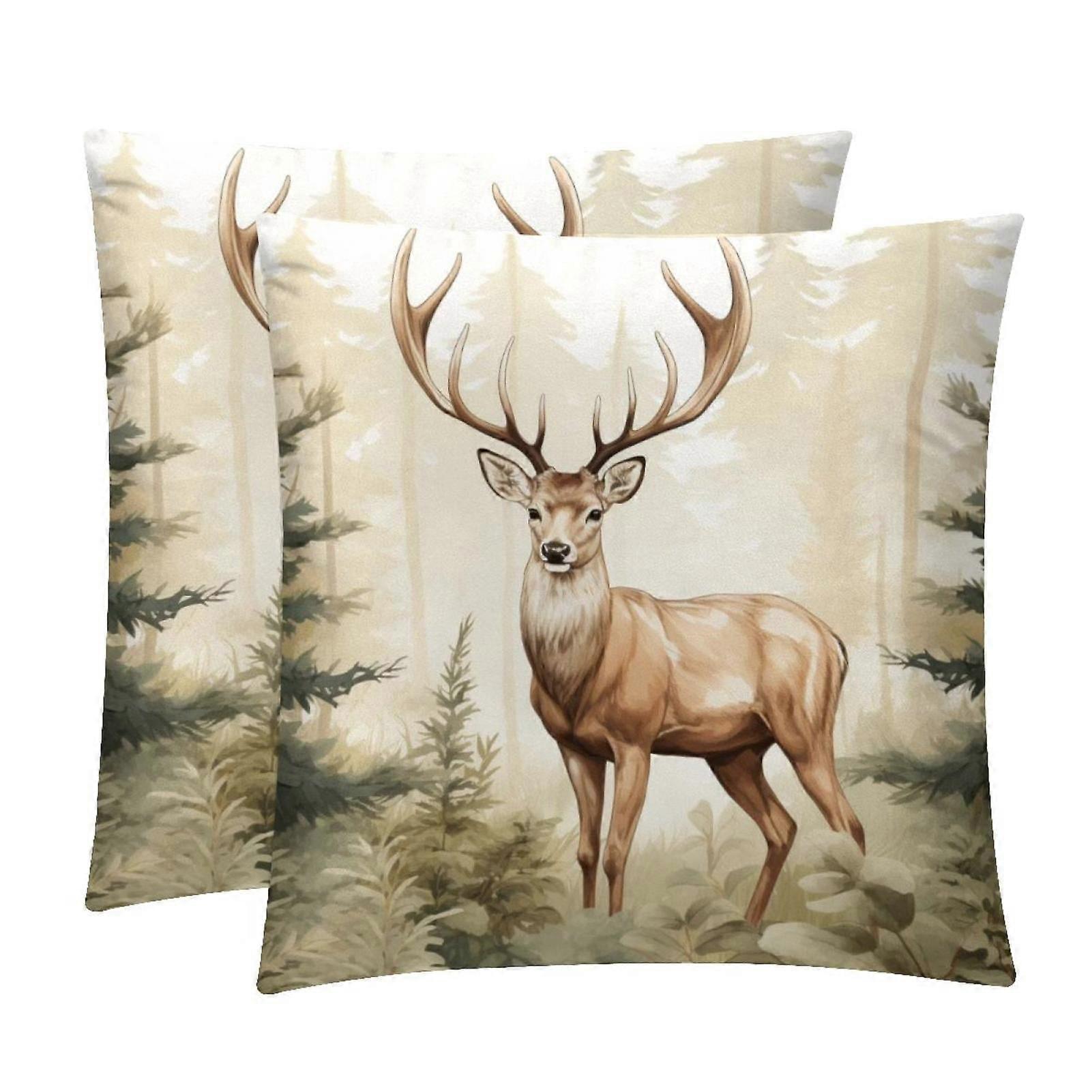 Deer Velvet Pillow Covers Set of 2, 16x16/18x18/20x20 Inches, Unique Patterns, with Inserts, for Various Occasions