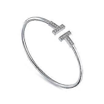Design semplice Bracciale Doppia T a forma di T Zircone Aperto Bracciale Moda Oro Rosa Regalo Tw