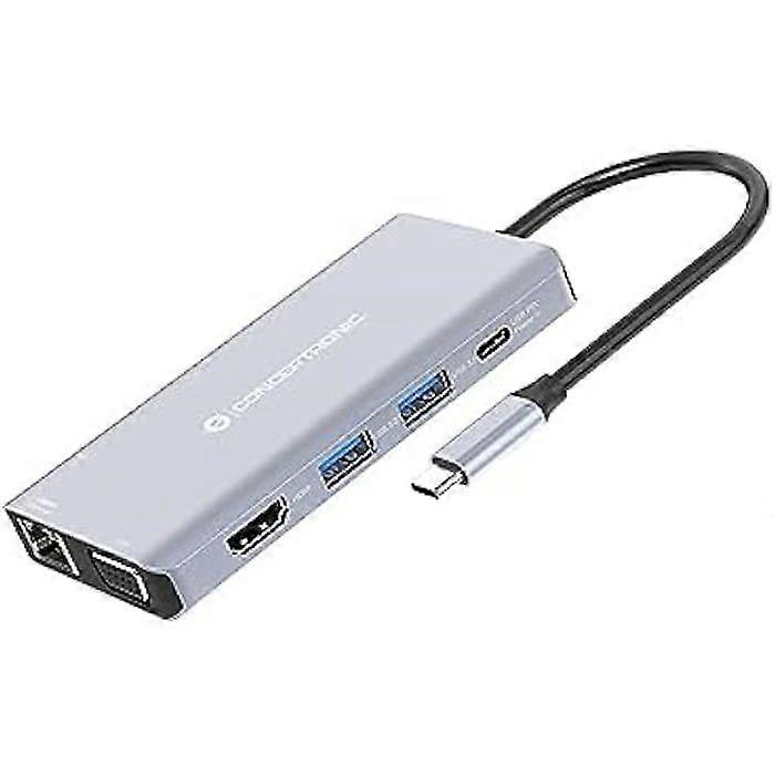 10 in 1 USB-C Docking Station HDMI/VGA/USB-C-PD/USB 3.0/SD/TF/GbE/AUX - Conceptronic DONN20G