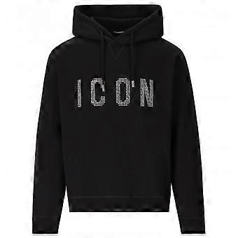 Dsquared2 Felpa con cappuccio nera Icon Logo Borchiato