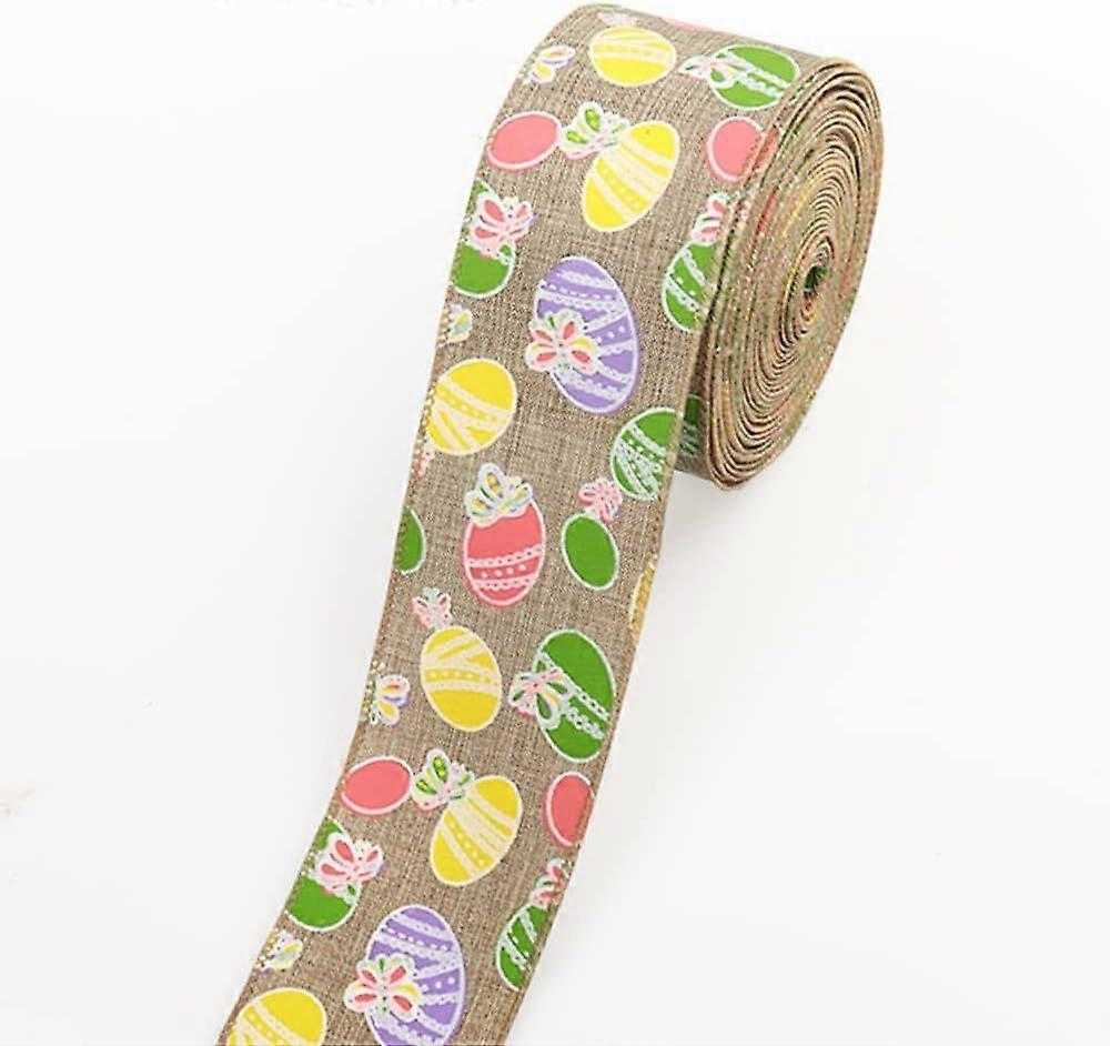 Easter Fabric Ribbons 10 Yards, Easter Egg Pattern Brown Background Burlap Edge