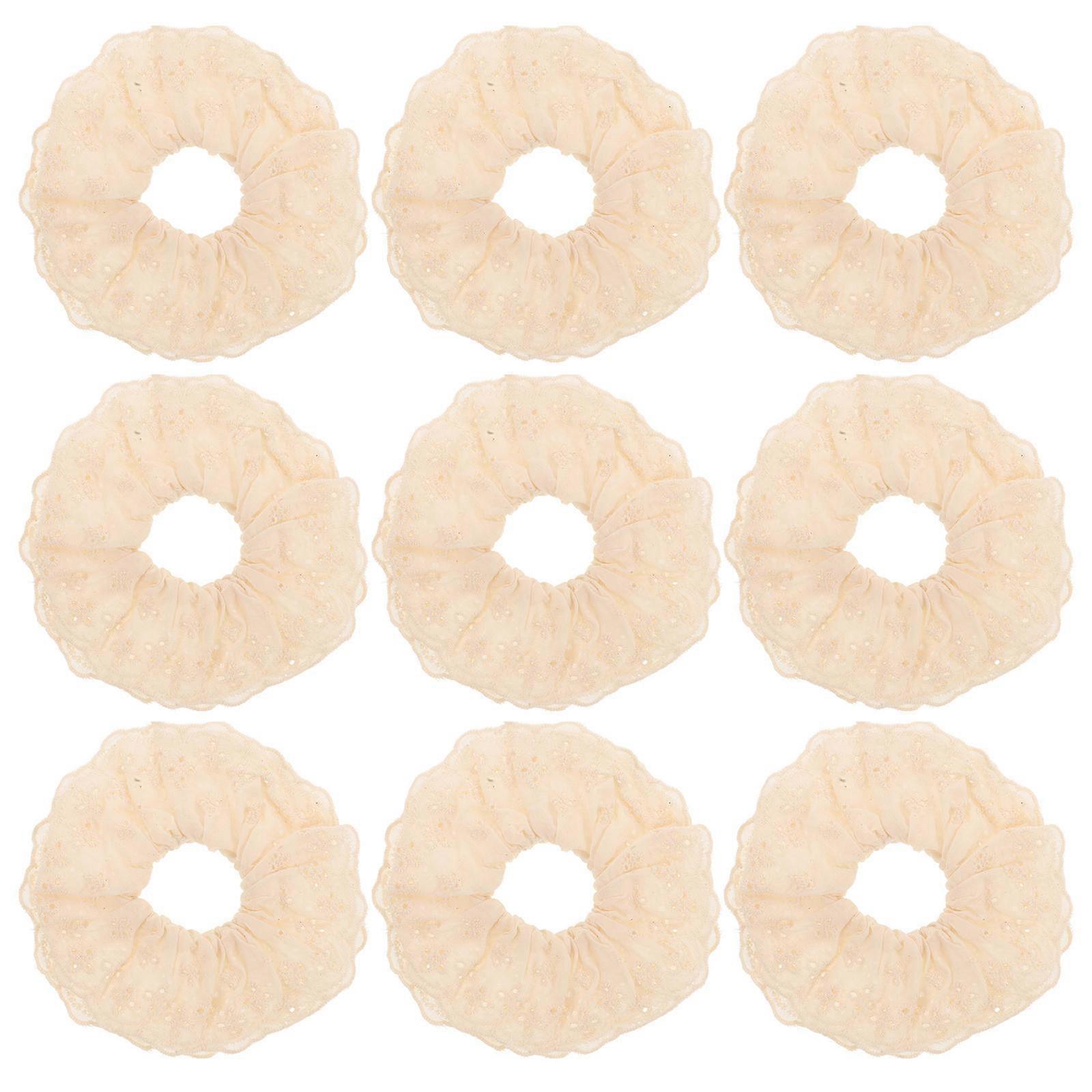 White Lace Crochet Scrunchies Set of 10 Oversized Soft Fabric Hair Ties for Women Secure Fit Comfortable Ponytail Holders Bridal Hair Accessories