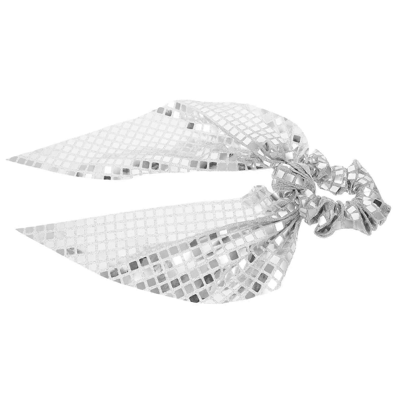Sequin Hair Scrunchies Silver Bowknot Ribbon for Women Elegant Use