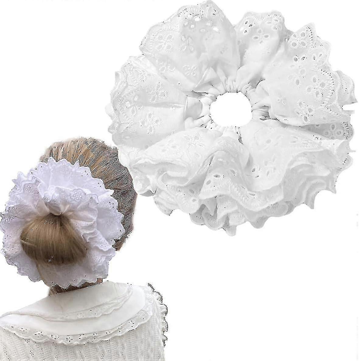 Thickened White Lace Hair Scrunchies Lolita Lace Large Scrunchies Flower Hair Ties White Lace Scrunchies Large For Women Girls