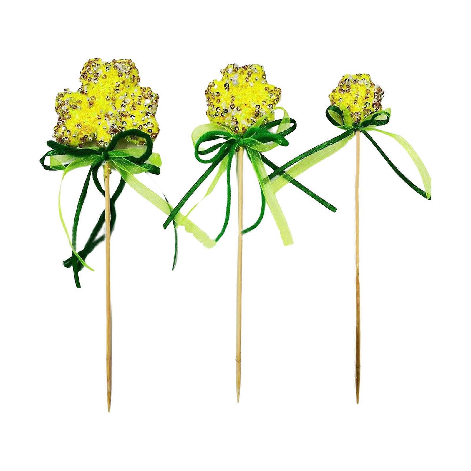 Fake Flower Green Home Decoration Office Hall 3PCS Foam Wood Outdoor Artificial Festival Sequinned Clovers Cuttings