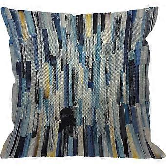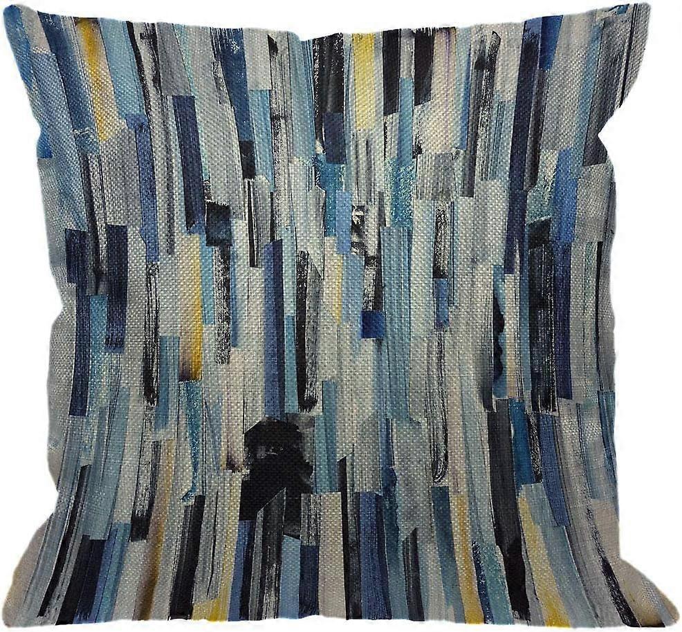 Abstract Stripes Throw Pillow Cover, Geometric Multicolor Stripes and Teals Ink Texture Decorative Pillow Cases Cotton Linen Square Cushion Cover for