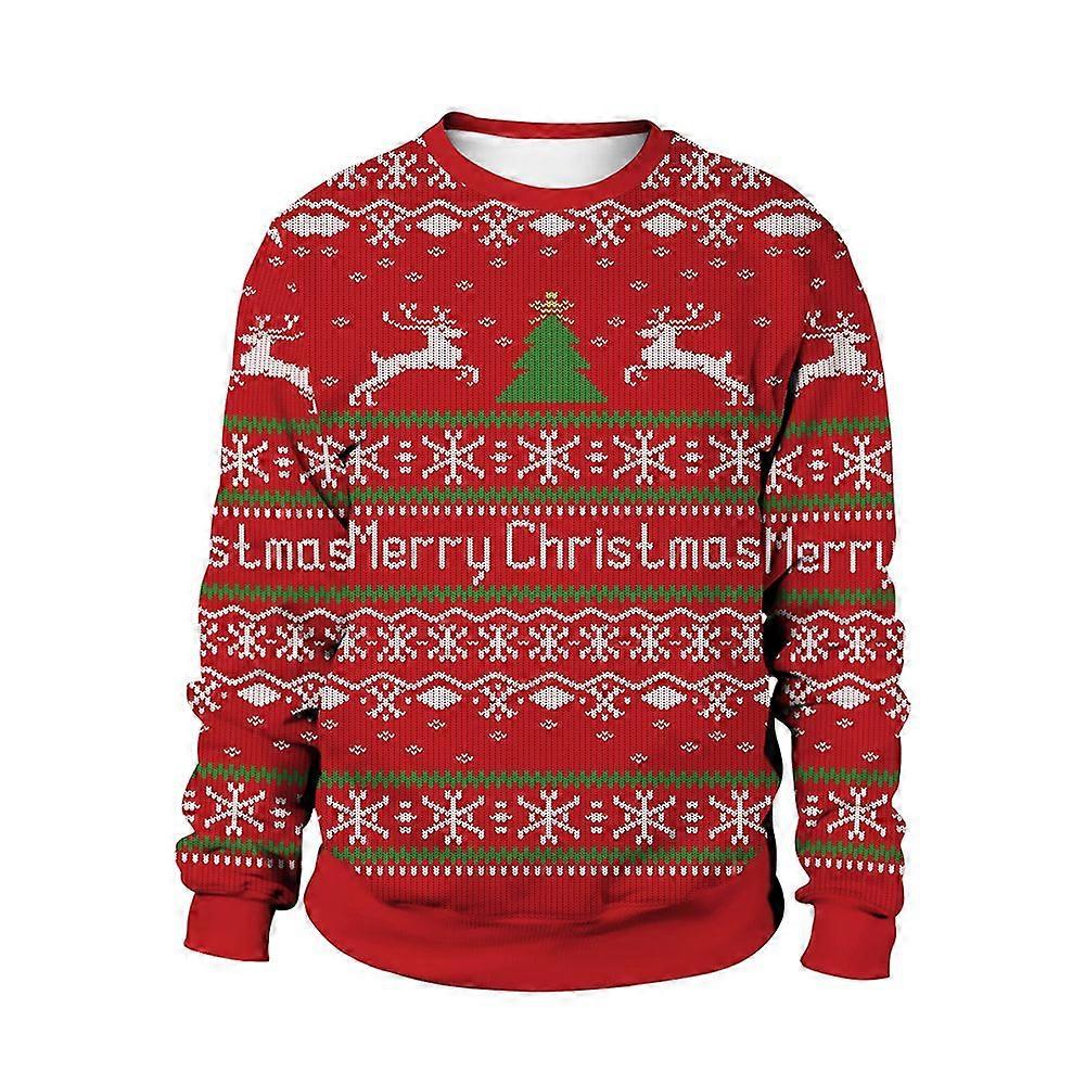 Women's Christmas Sweatshirt Festive Reindeer & Tree Knit-Style Pullover with Round Neck