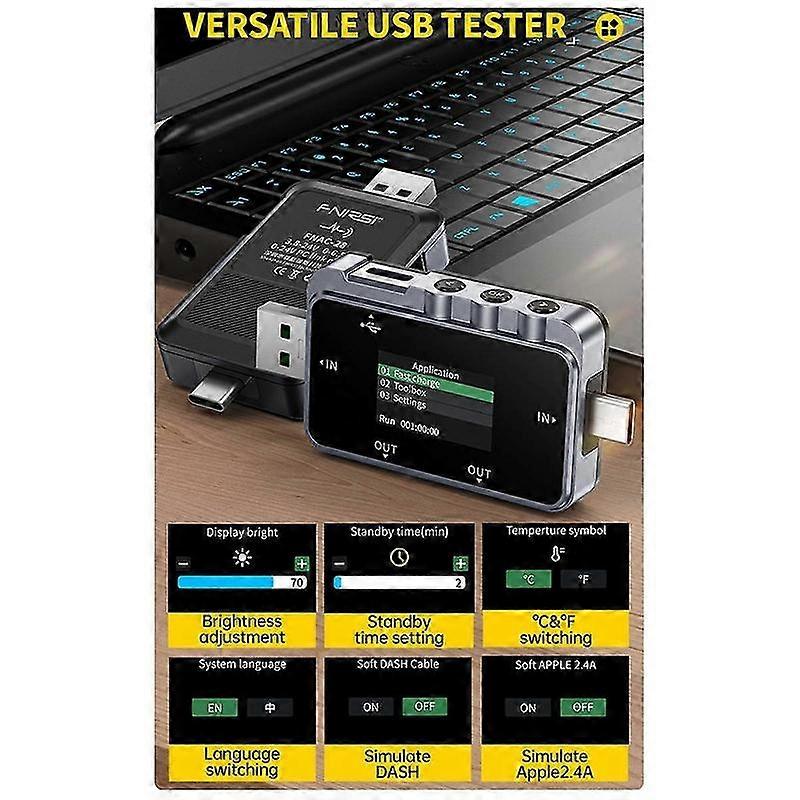 FNIRSI FNAC-28 USB Tester Type-C Current and Voltage Meter Fast Charging Protocol Detection Trigger