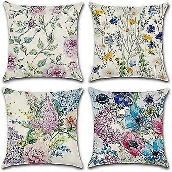 4 Piece Cushion Cover Retro Flower Decorative Pattern