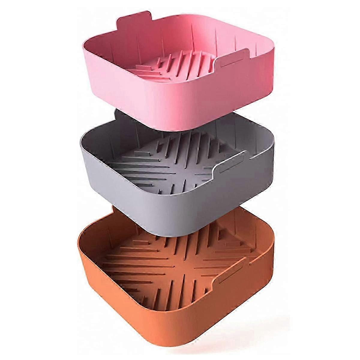 3Pcs Air Fryer Silicone Liners, Square Air Fryer Basket Liners 8.2inch, Non-Stick Air Fryer Pot for 4-8 QT Air Fryer