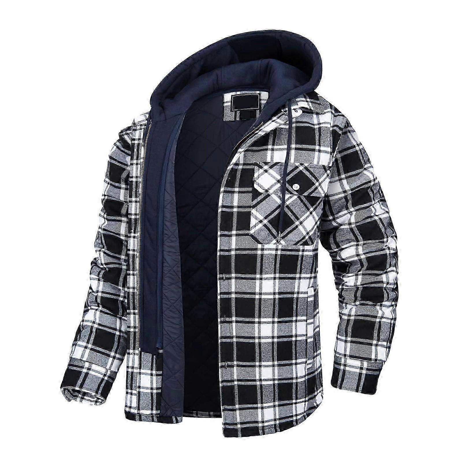 Men's Autumn/Winter Long Sleeve Lapel Plaid Hooded Thickened Shirt Jacket