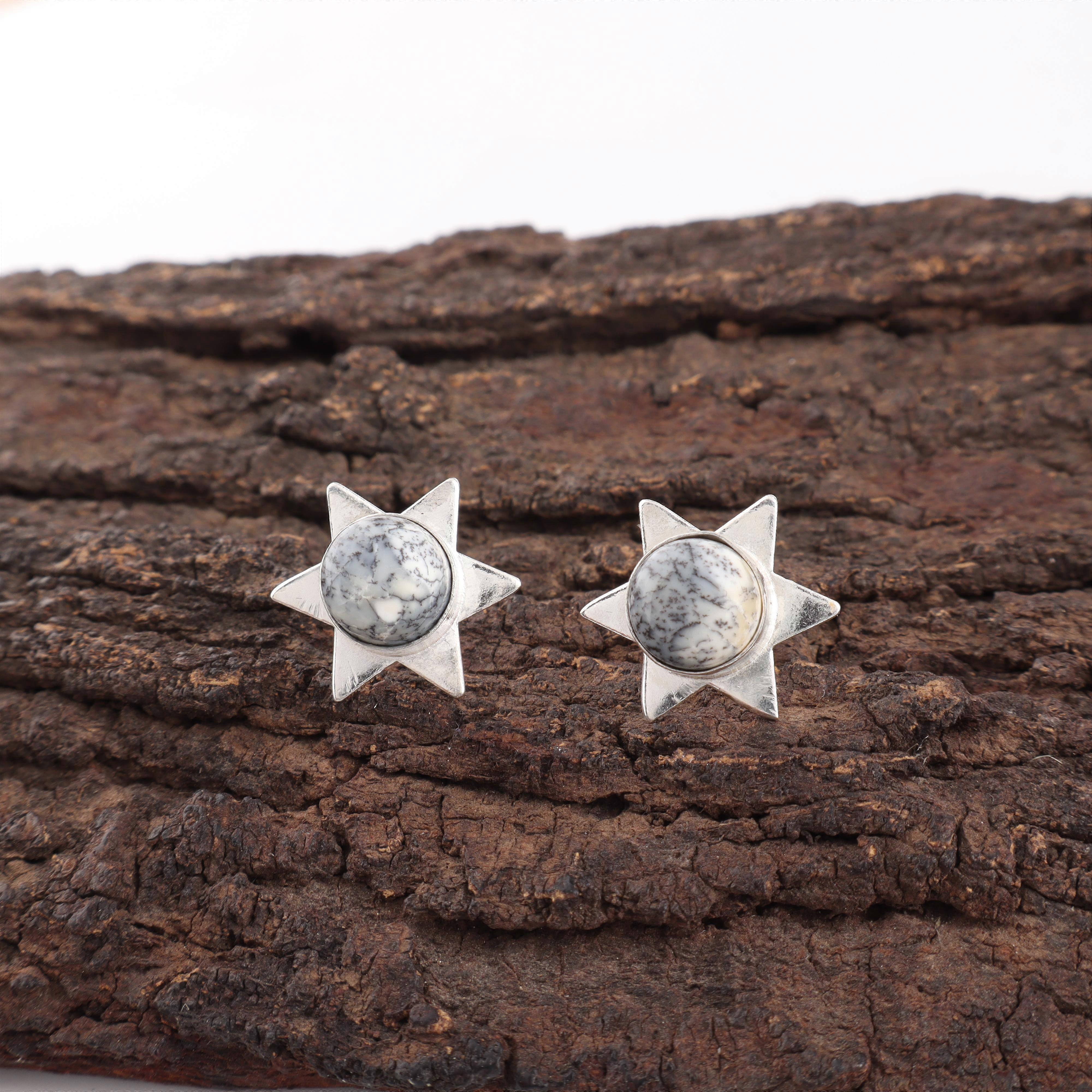 Dendritic Opal Gemstone Jewelry, 925 Solid Sterling Silver Earrings, Handmade Silver Everyday Earrings For Engagement Gift
