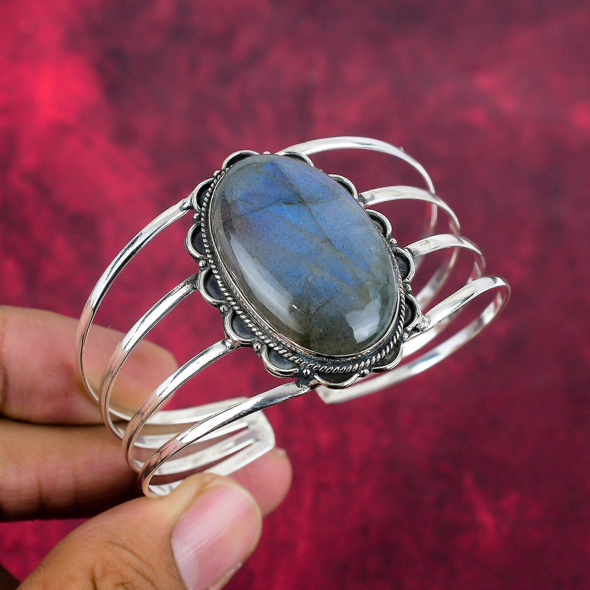 Labradorite Handmade Gemstone Jewelry, 925 Solid Sterling Silver Bangle Unique Design Jewelry, For Women