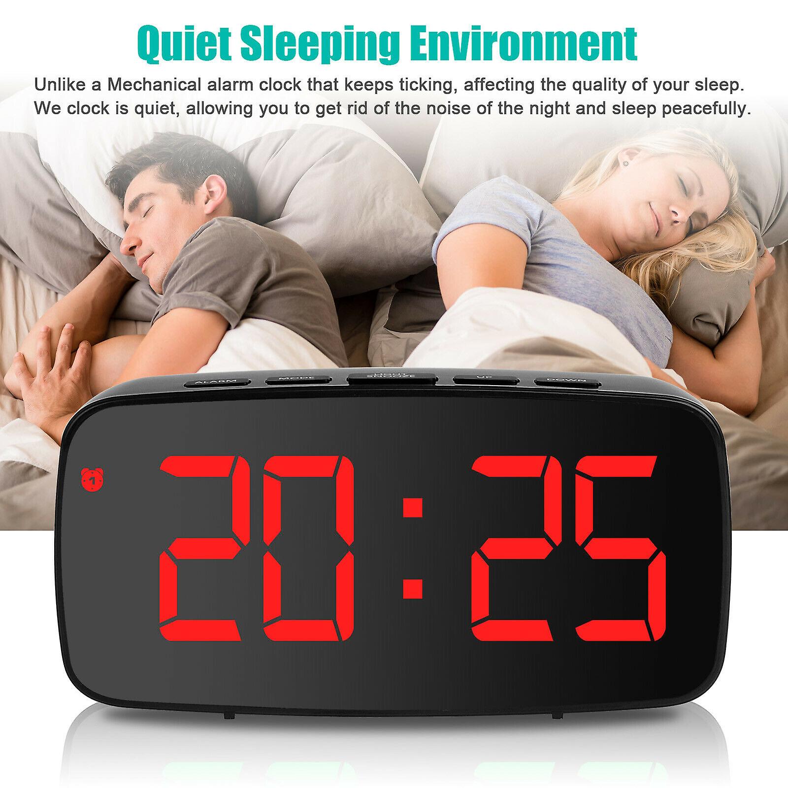 Large Digital LED Desk Alarm Clock Mirror Display USB Snooze Temperature 5 Keys