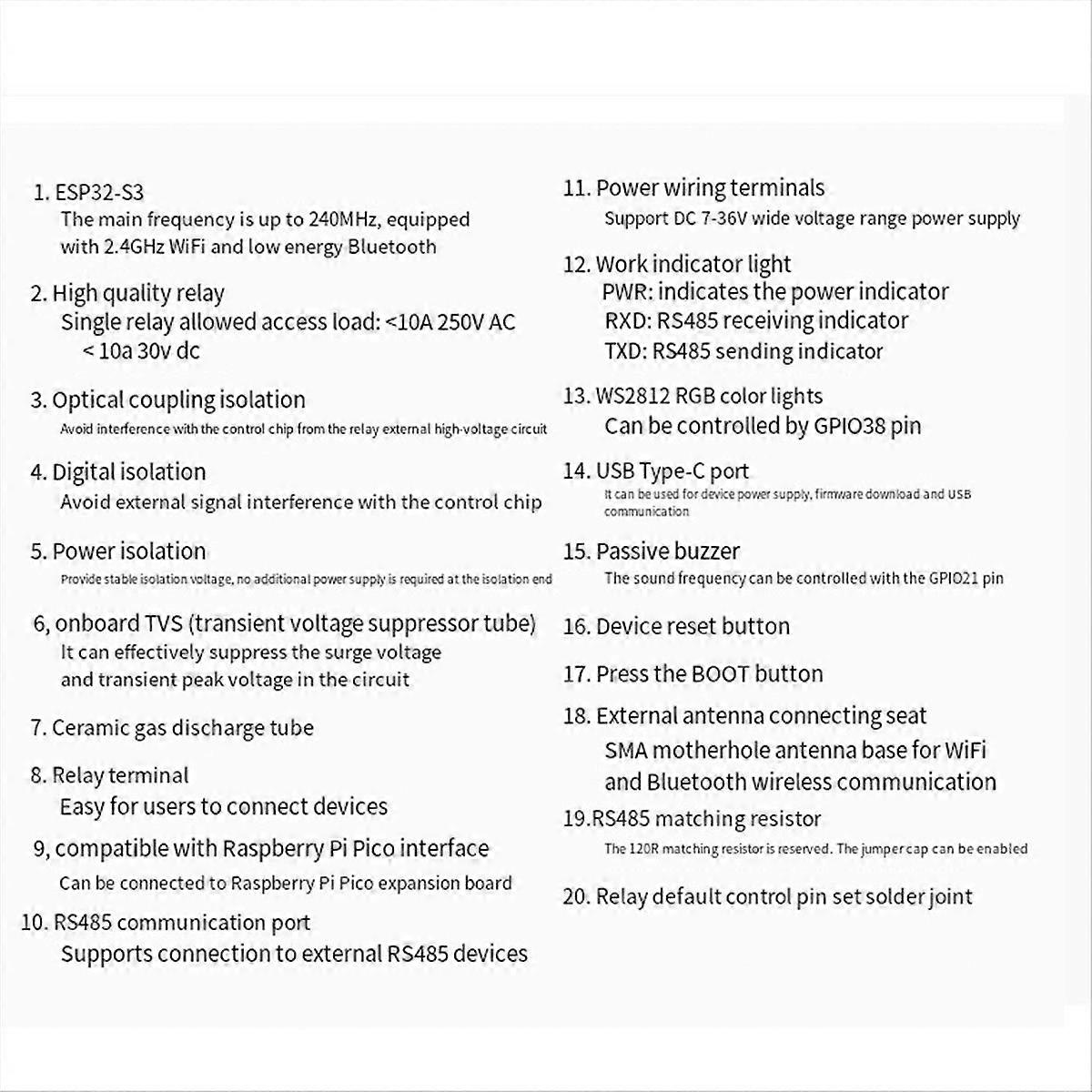 Waveshare Industrial Grade ESP32-S3 6CH WiFi Relay Module Supports WiFi/Bluetooth/RS485/Pico Interface Relay