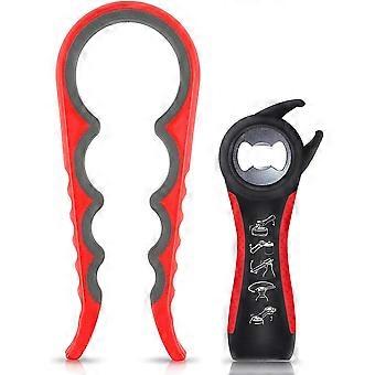 Jar opener, 2-piece bottle opener, 5 in 1 bottle opener, 4 in 1 can opener, manual jar opener, bottle opener, can opener ideal for weak hands, elderly