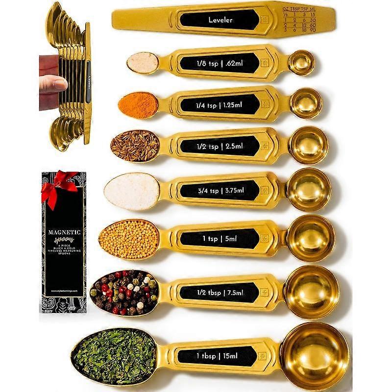 Measuring Spoons with Leveler - Featuring 8- Upgraded Style, Dual-Sided, Stackable, Stainless Steel Measuring Spoons Set - Fits in Jars, L