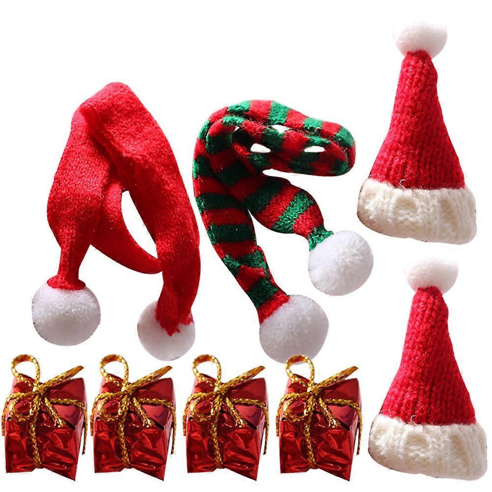 Mini Knitting Hats Christmas Scarf Model for Kids 5Sets Red Decoration