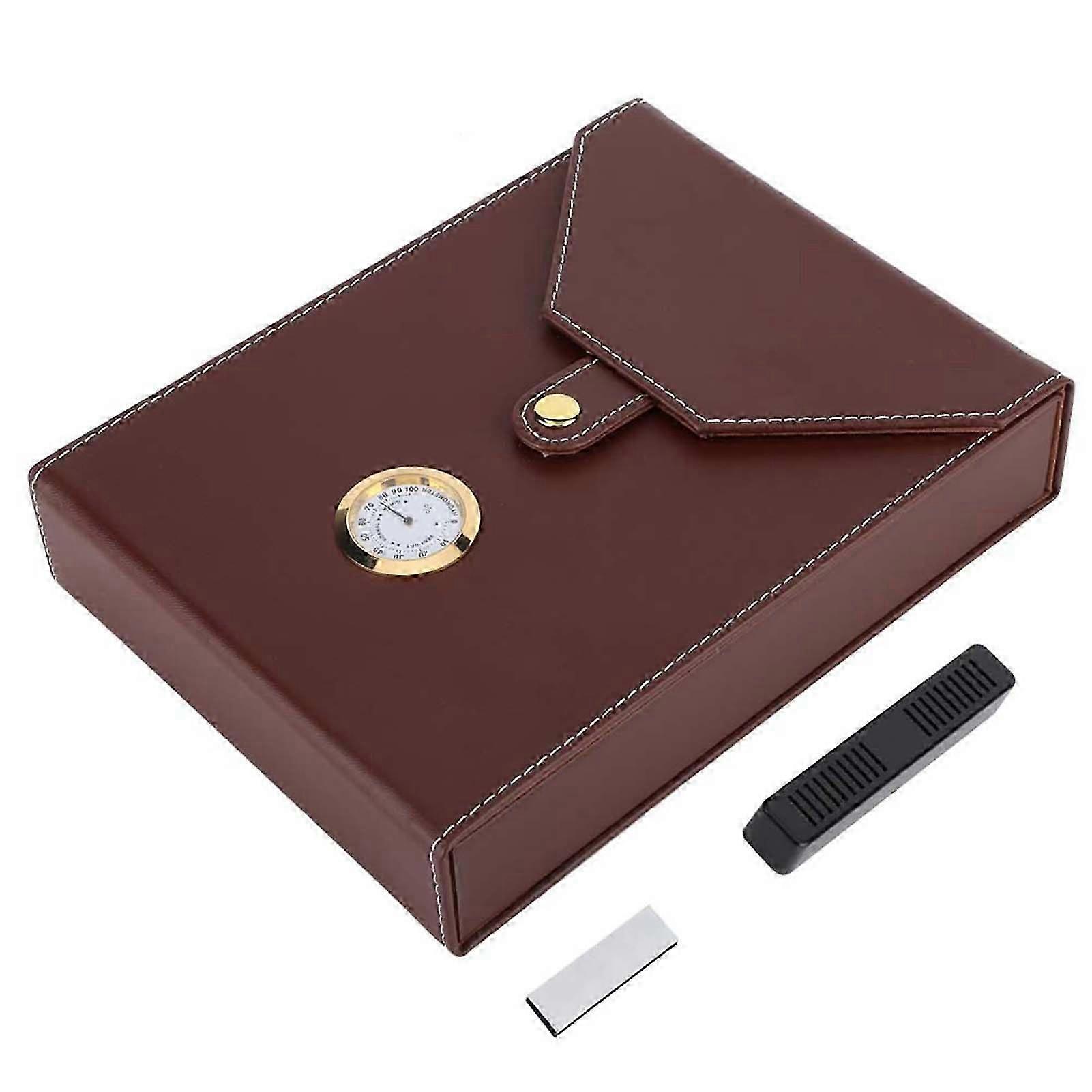 Mini Portable Leather Humidor Cigar Box Cedar Wood Cigarette Container Storage Case (Brown) Edition 1128